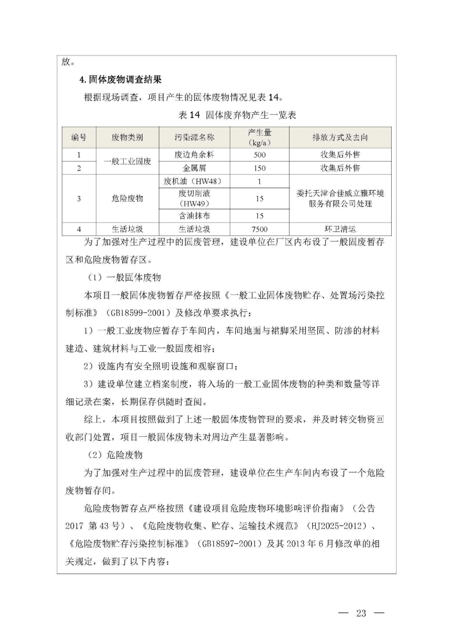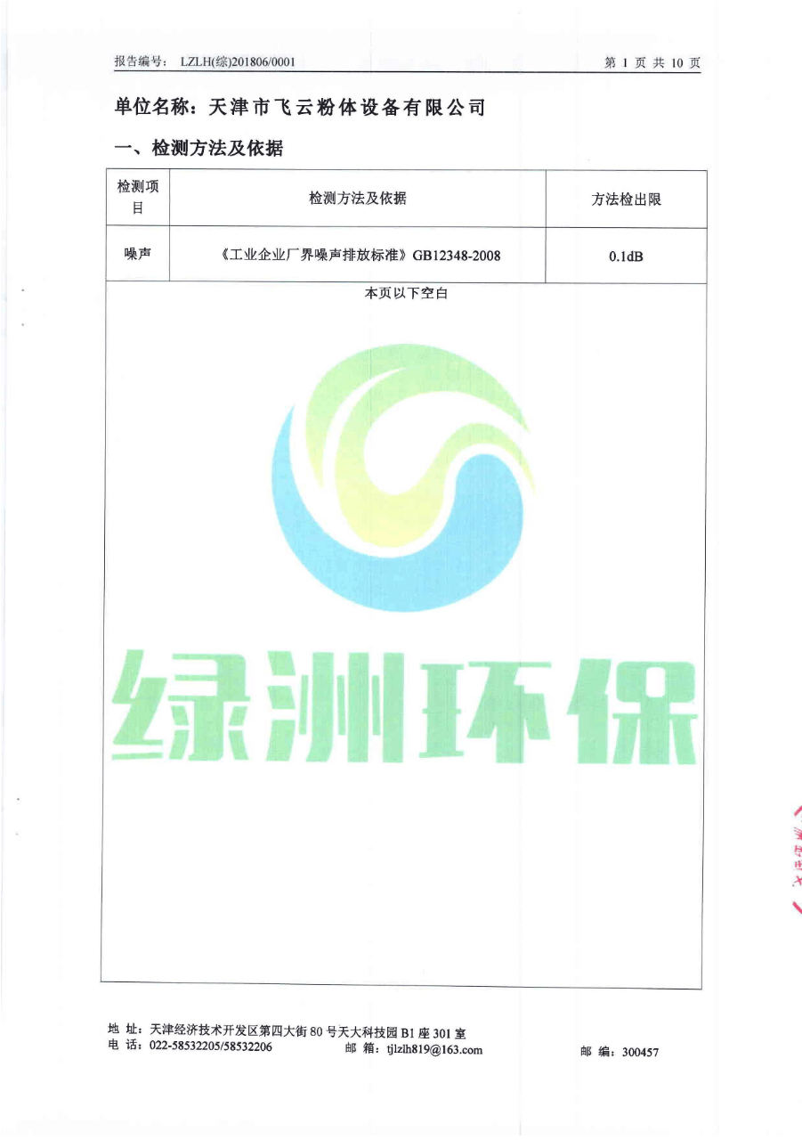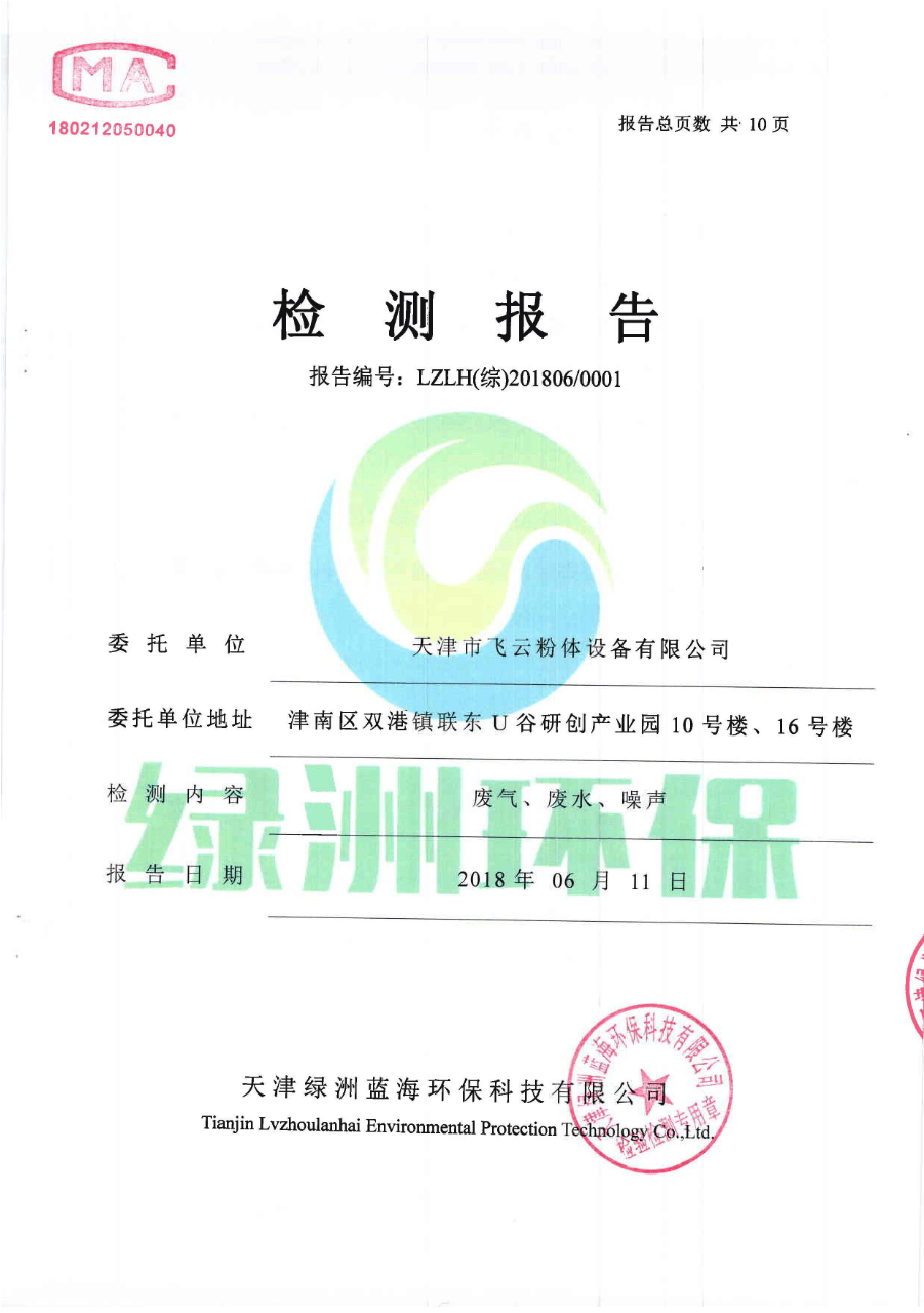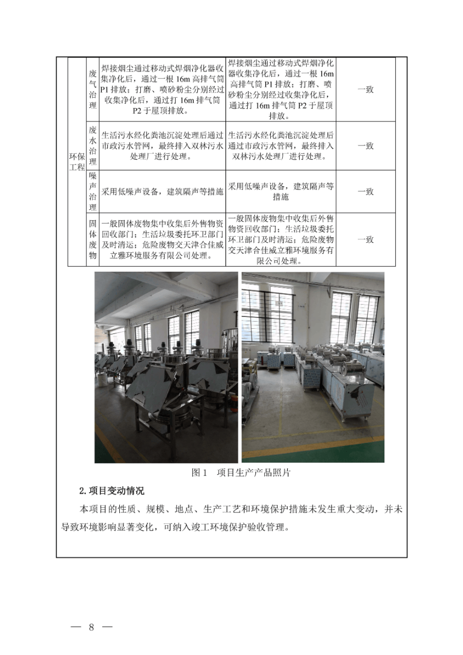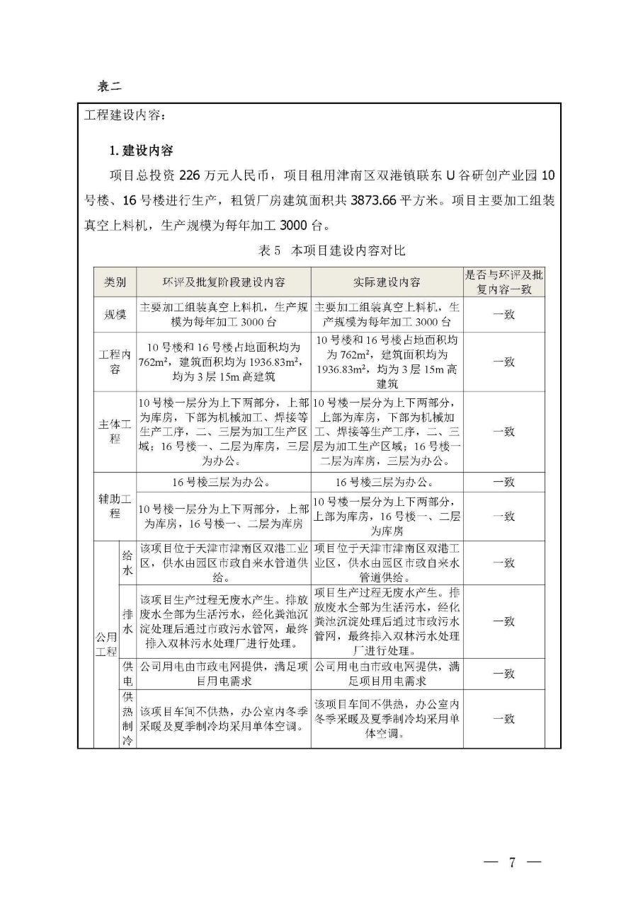 天津市飞云粉体设备有限公司年产 3000 台真空上料机项目竣工环境保护 验收监测报告表